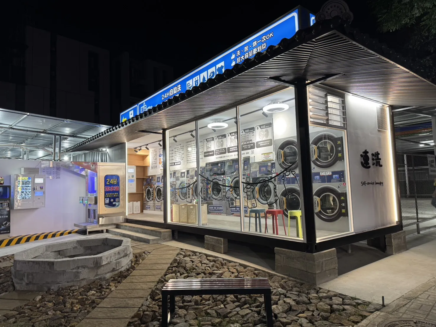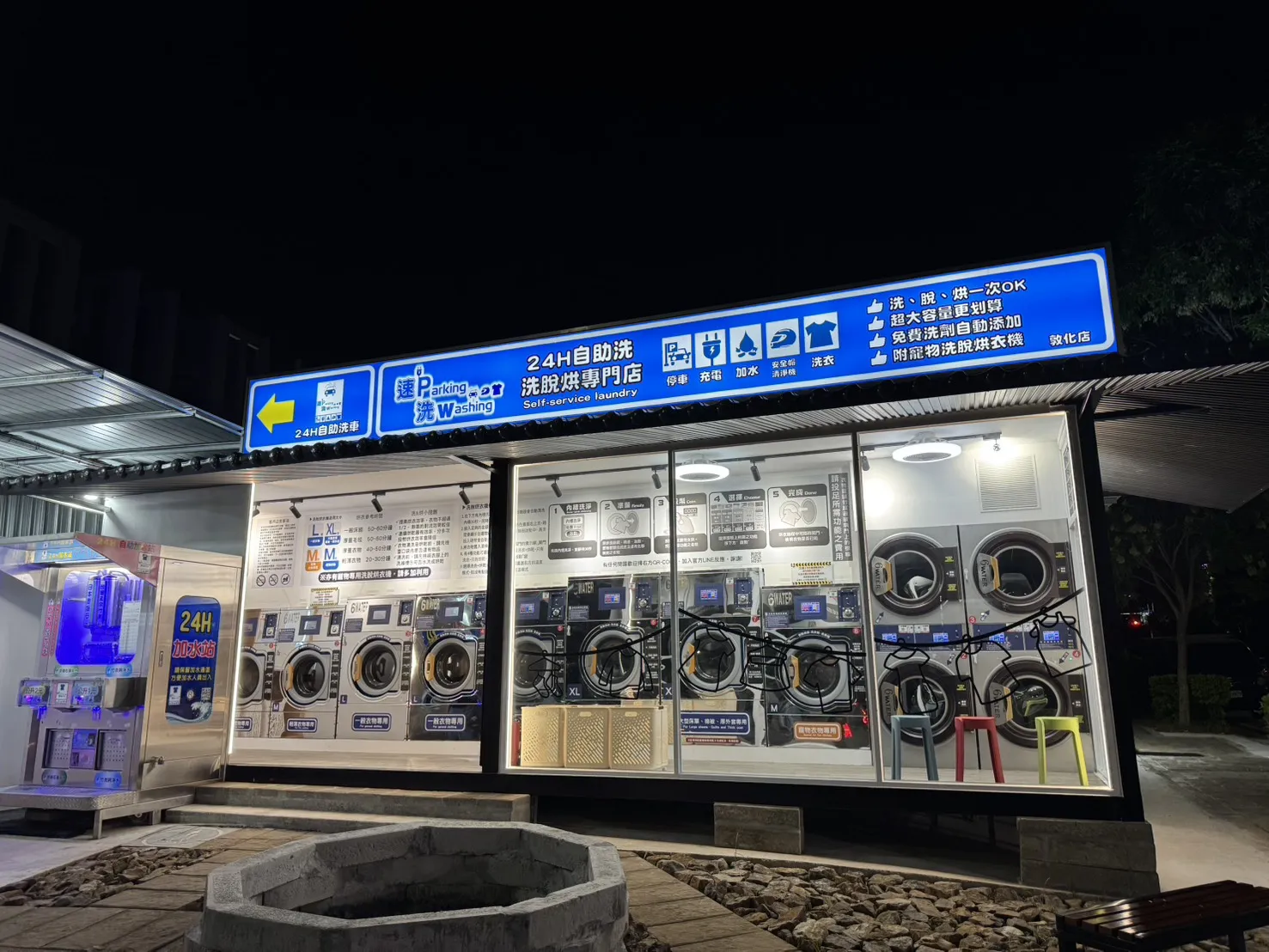 空地式洗衣館環境加上文創小造景,能讓整個洗衣館氛圍和Level大大提升 讓來使用的消費者除了能使用到很棒的機台,還能享受優美的環境